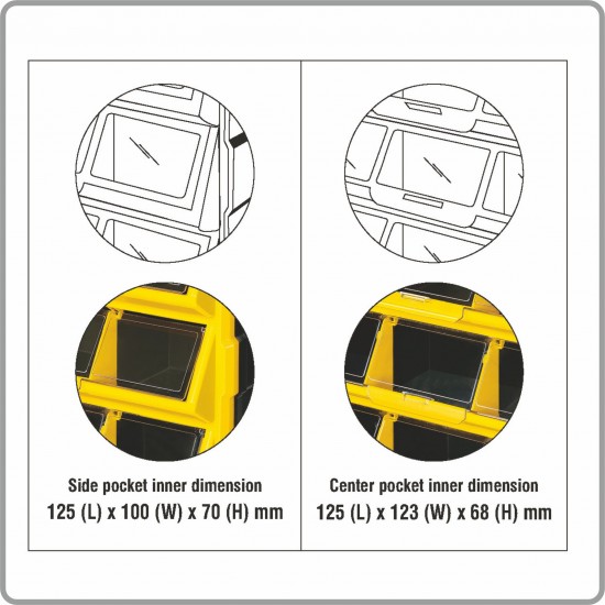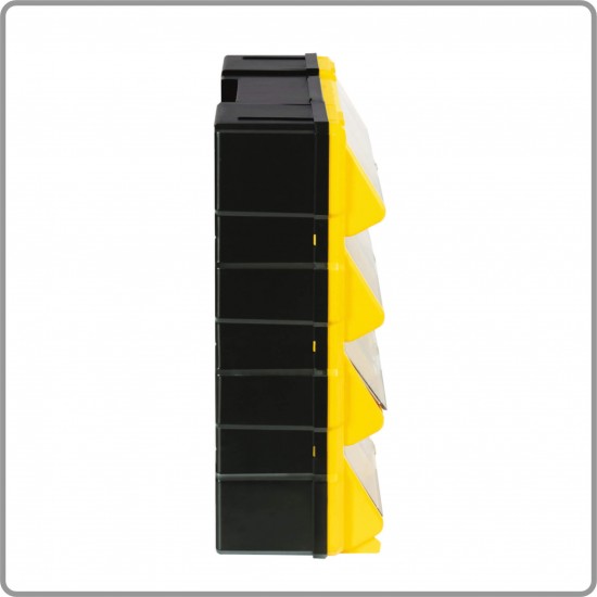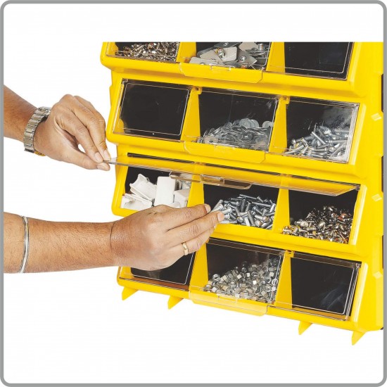 • The component organisers are in a two tone combination of Golden Yellow frame and Black body, the drawers and horizontal partitions are transparent.